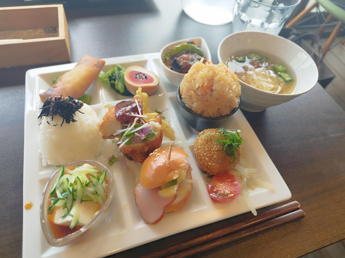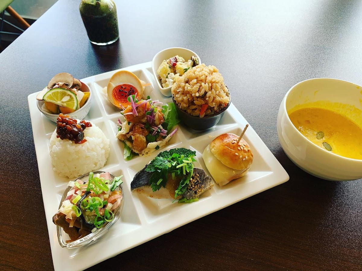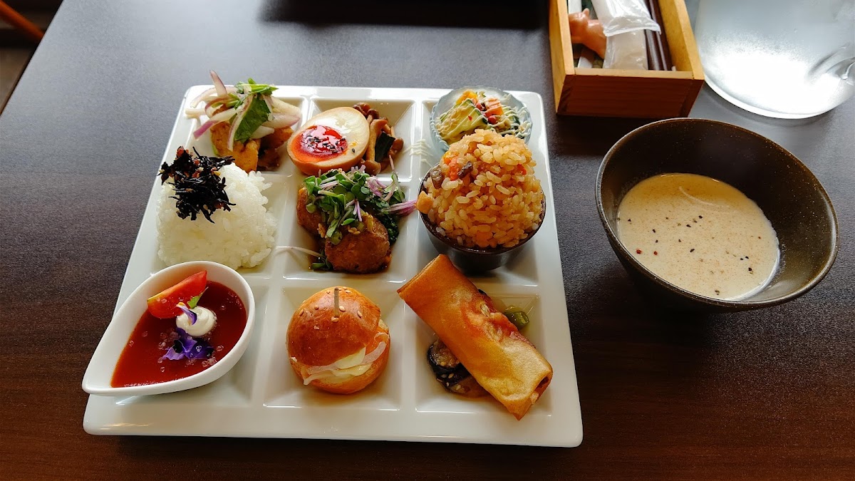 What makes this café a must-visit is their signature offering, the 9マスランチプレート, priced at an exceptional value of JP¥1,800. This bento-style lunch features an array of nine meticulously prepared mini dishes, each bursting with flavor and showcasing a variety of textures. Customers rave about the selection—where every bite offers a delightful surprise, from comforting hot dishes to vibrant salads, ensuring that your palate is thoroughly pleased. You'll also enjoy a warm soup and a dessert that adds a sweet finish to your meal, complemented by a refreshing drink.